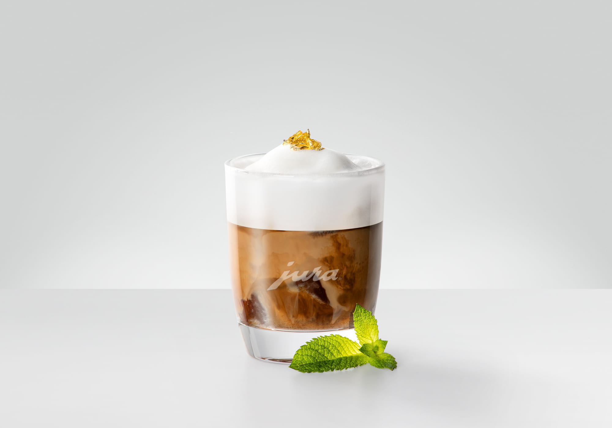在意式浓缩咖啡杯中放入薄荷巧克力