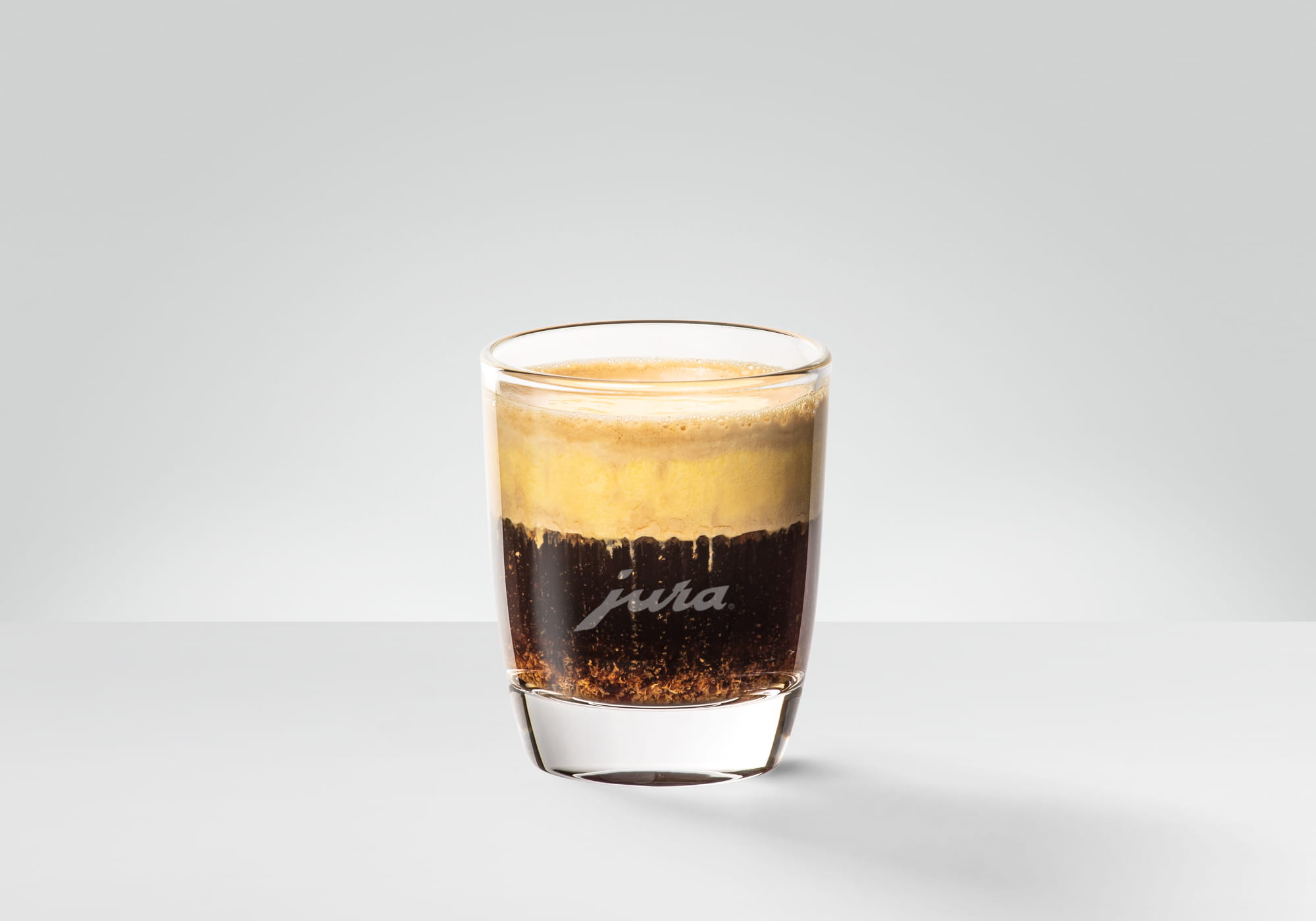 将杯子放置在咖啡出口下方,制作一杯意式浓缩咖啡,淋在巧克力蛋上。